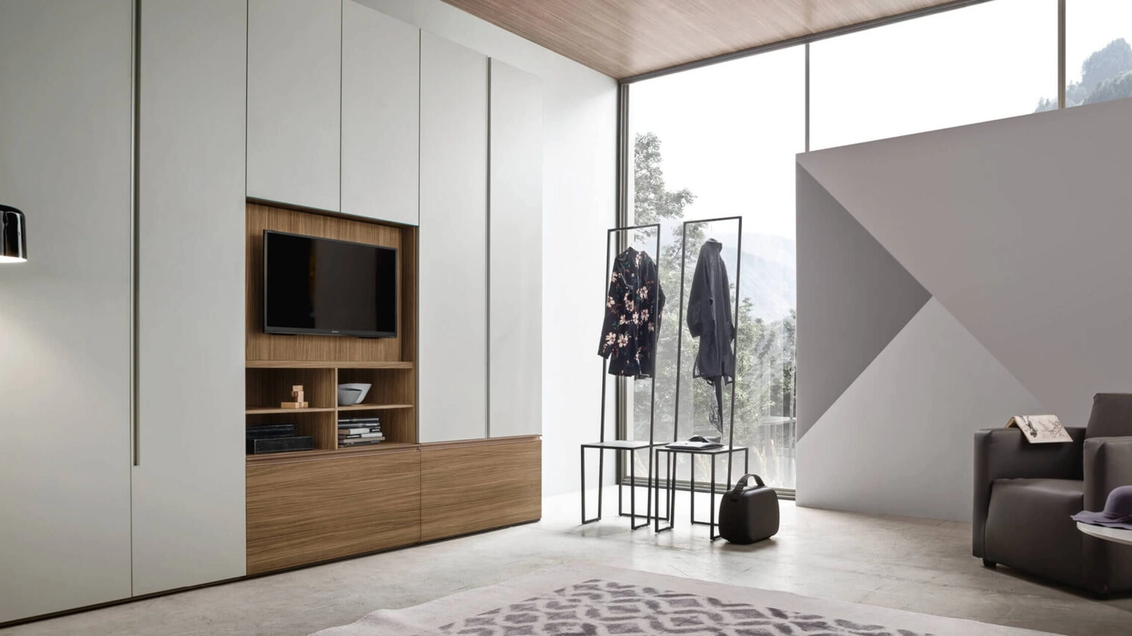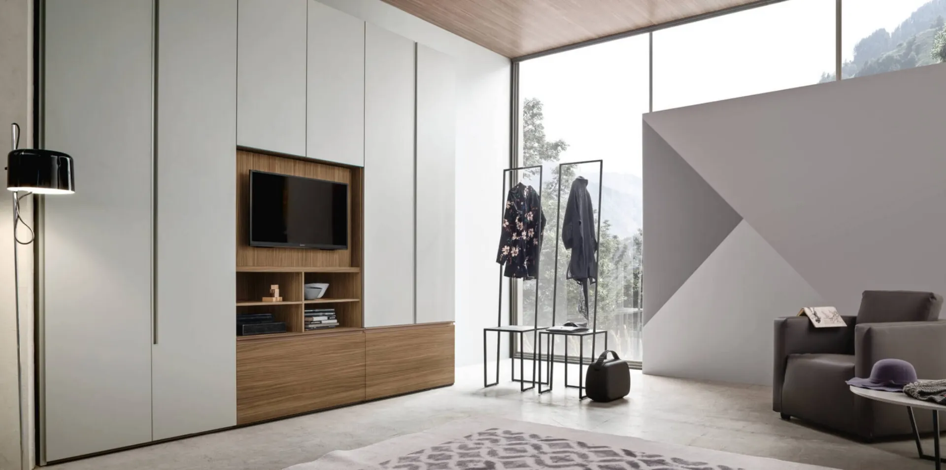 Se desideri una camera da letto arredata con gusto, scegli l'armadio Step Up con anta TV girevole con ante battenti di Maronese!