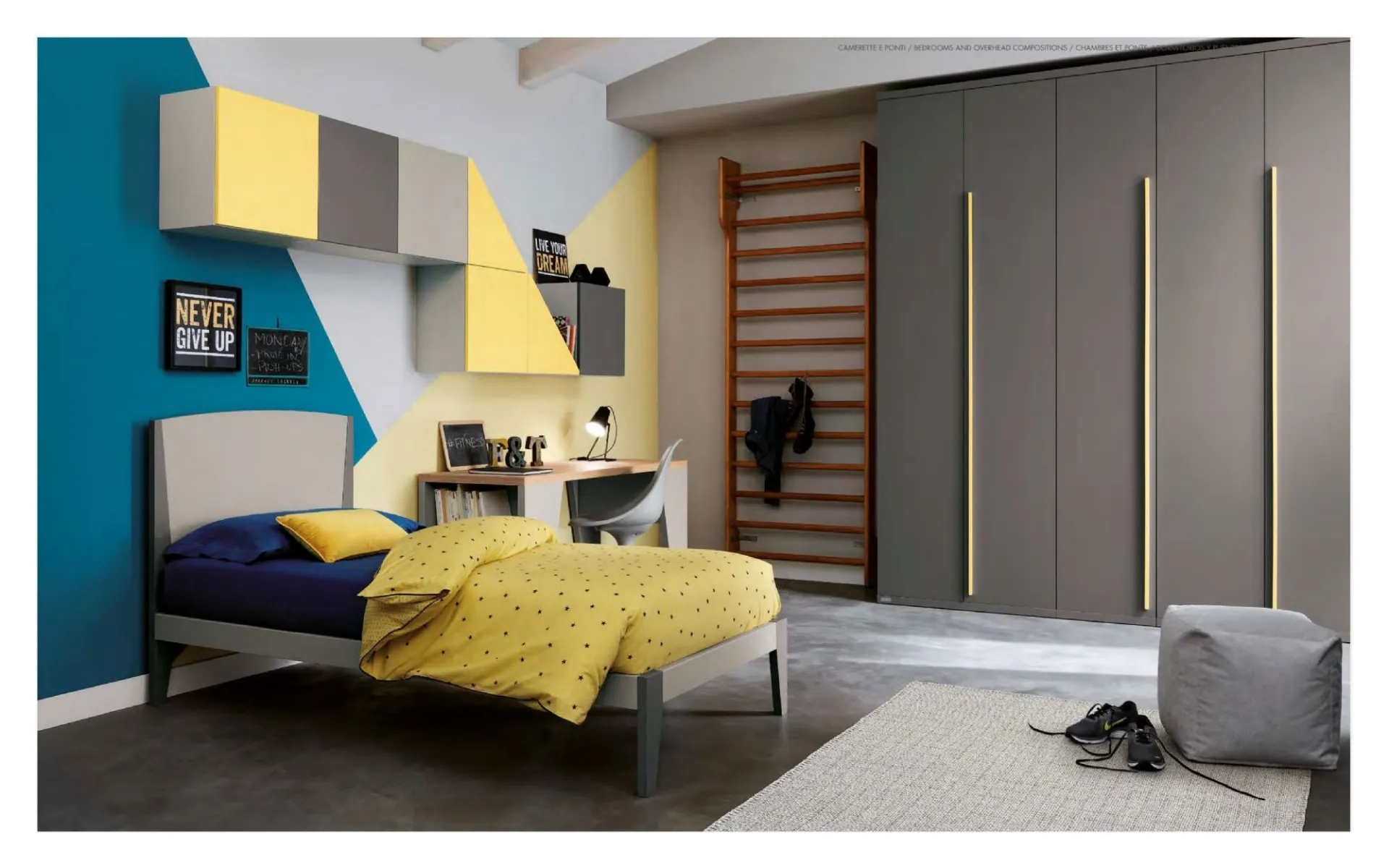 Le più esclusive Camerette con letti a terra, a ponte, a castello, con letti scorrevoli o a soppalco, sempre a misura di bimbi e giovani e di ottima fattura, ti attendono in negozio. In base alle esigenze di ciascuno, alle dimensioni, alla forma e allo stile della cameretta, deciderai in che modo collocare sistema letto, scrivania, comodini, sedie e armadio, ottimizzando gli spazi. Le Camerette sono l'ambiente dove i nostri bambini passeranno i momenti importanti della loro vita, giocando e riposando, difatti occorre che sia uno spazio arredato al meglio, agevole e sicuro. In una completa offerta di soluzioni e finiture attuali disponibili sul mercato, di certo troverai la soluzione perfetta per le esigenze dei tuoi figli e figlie, unendo linee ben studiate a doti di ergonomia e sicurezza. L’arredamento per le Camerette, che include letti, armadiature e comodini, segue i tuoi bambini nella crescita assecondando necessità che cambiano nel tempo e infondendo energia e serenità. In questo interno si svolgono attività diverse: il divertimento, lo studio e il sonno sono solo alcune; gli arredi per la cameretta devono assicurare funzionalità, sicurezza e comfort.