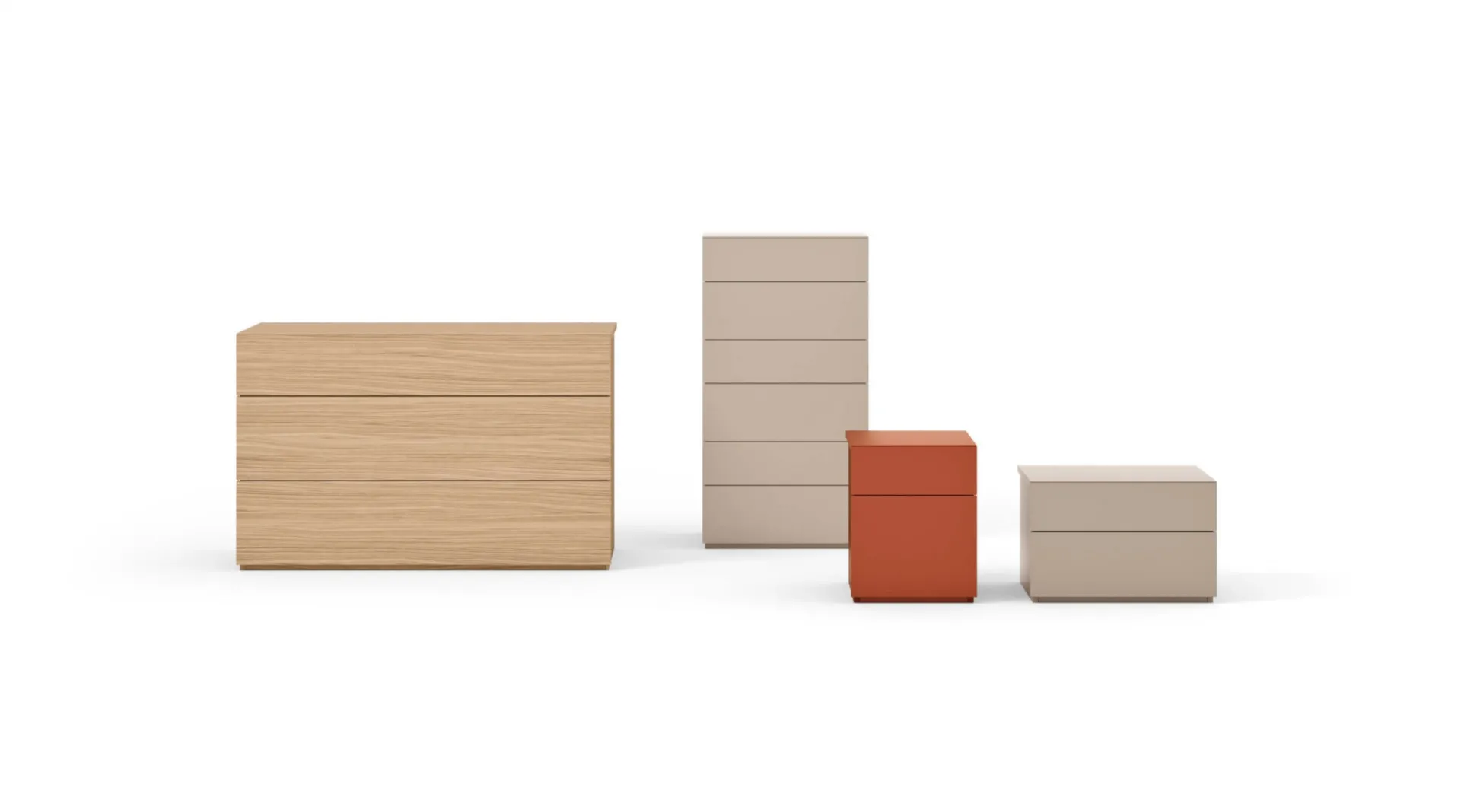 Un ricco catalogo di cassettiere Maronese: i comodini moderni in melaminico, come Gruppo Brio, sono tra le proposte più esclusive.