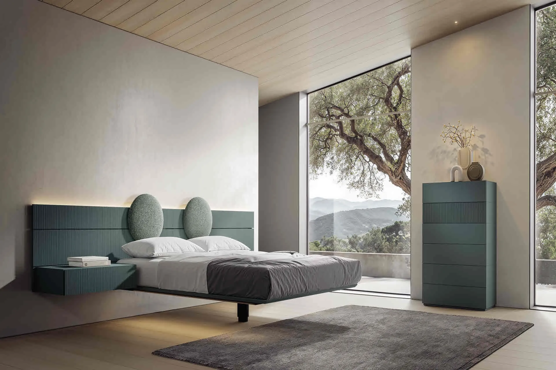 Il letto 911 in laccato opaco, tra i modelli con contenitore matrimoniali moderni di Veneran, è pensato per assicurarti il relax totale.