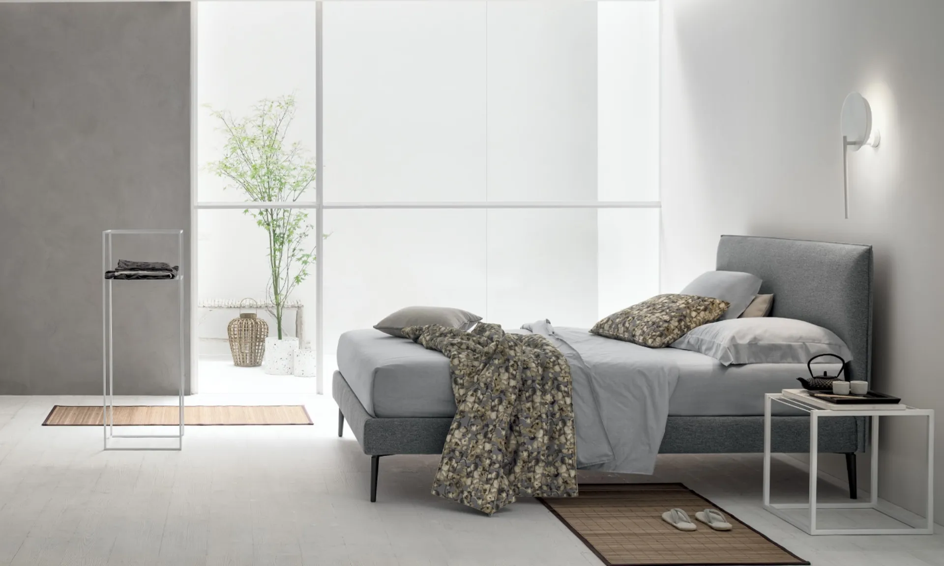Il letto Mood in tessuto, tra i modelli con contenitore matrimoniali moderni di V&Nice, è ideale per assicurarti il sonno più profondo.