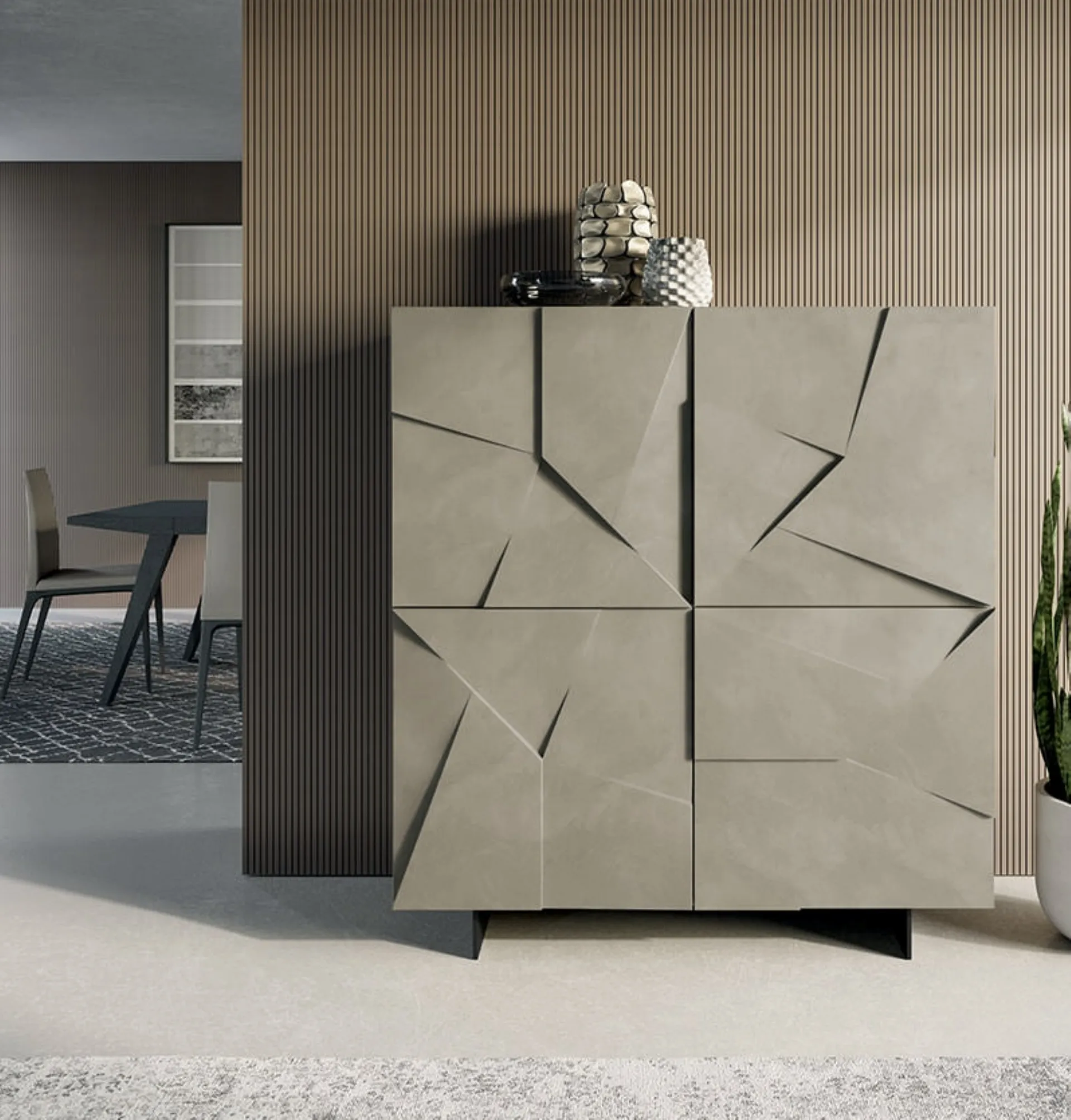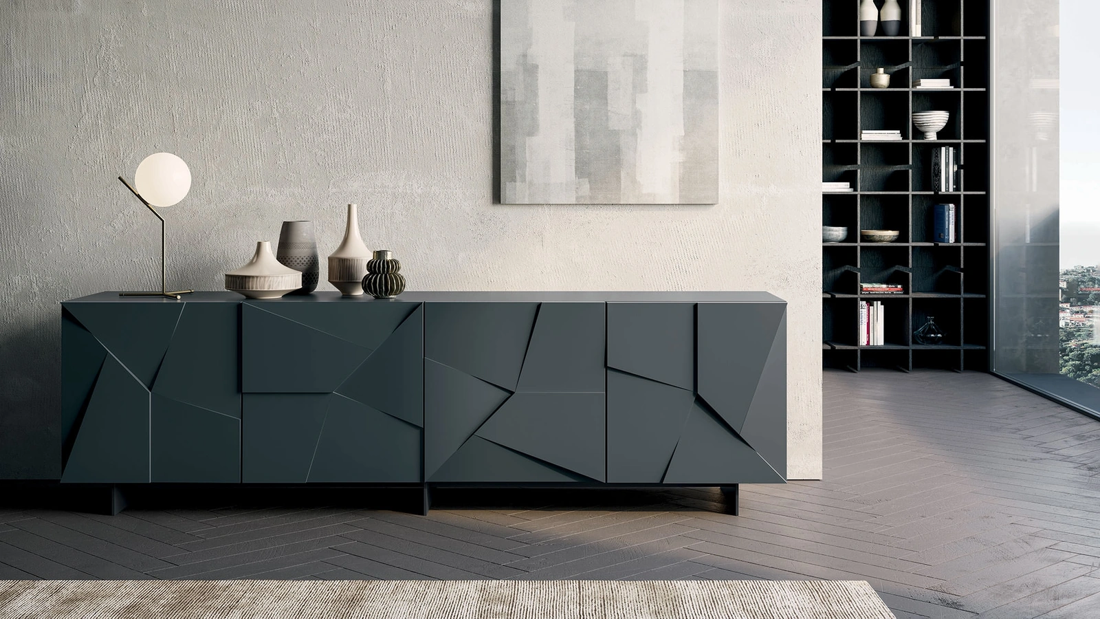 Arreda un living pratico e dinamico con questa madia Concrete di Dall'Agnese: scopri le più belle Madie in laccato opaco.
