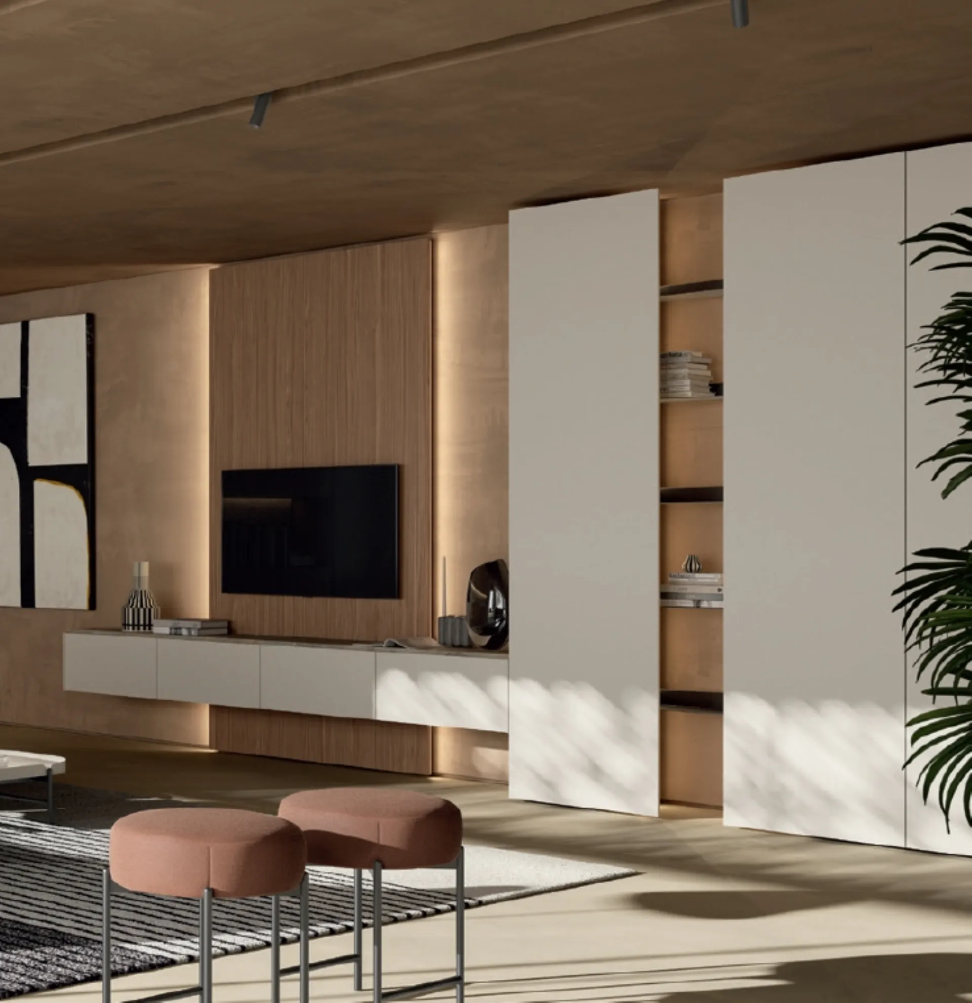 Se vuoi ultimare un living operativo e pratico dalle linee moderne, ecco a te la parete attrezzata DA45 Grigio Seta Dall'Agnese.