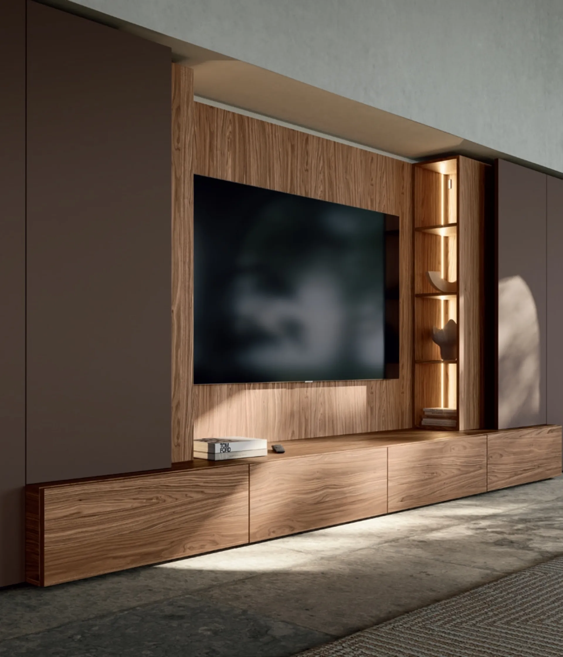 Clicca e scopri di più sulla parete attrezzata Slim Noce Canaletto della marca Dall'Agnese: è la soluzione dalle linee moderne perfetta per te.