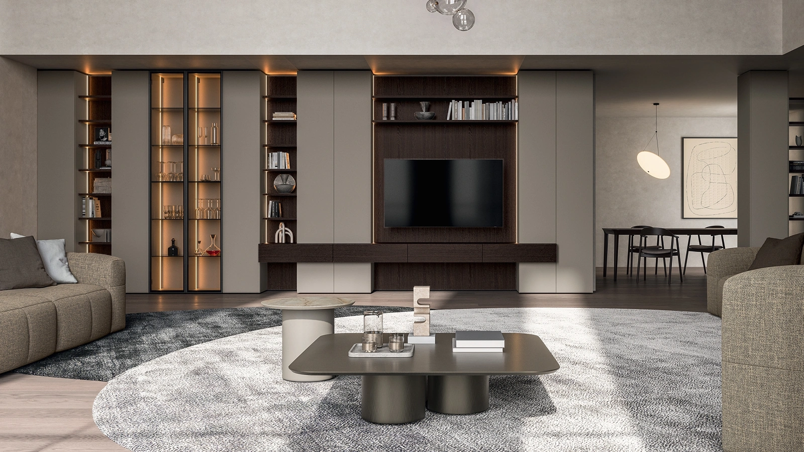 Se vuoi completare un living pratico e operativo dalle linee moderne, ecco a te la parete attrezzata Slim Rovere e Laccato Dall'Agnese.
