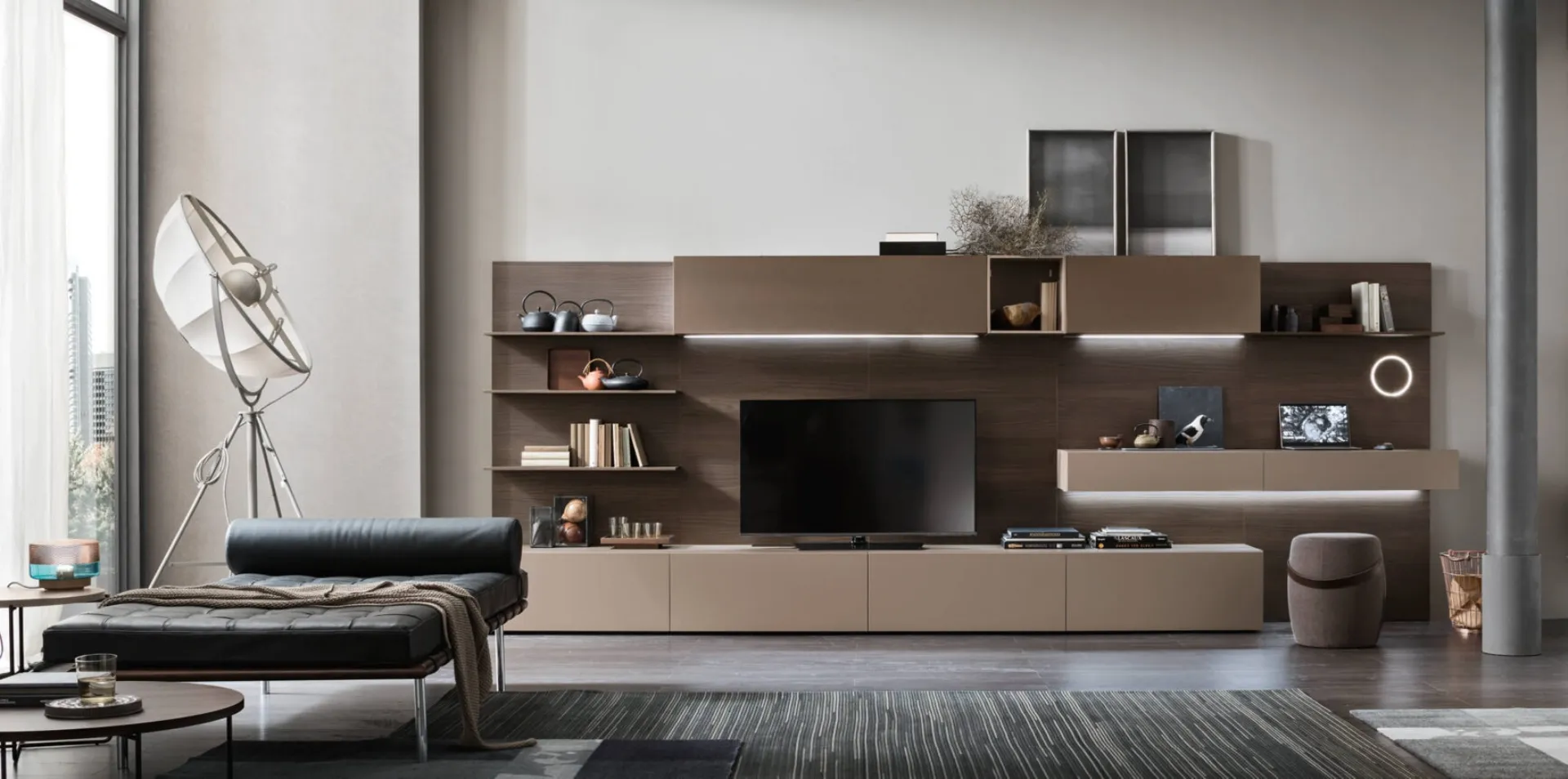 Attraverso un gioco dinamico di accostamenti fra componenti a giorno o vani chiusi, le Pareti Attrezzate moderne arredano il soggiorno valorizzando ogni spazio. Questa parete attrezzata è una delle soluzioni della marca e ti permetterà di arredare il living seguendo le più personali esigenze abitative. Le Pareti Attrezzate hanno acquisito un posto importante nella zona giorno delle nostre case: sono mobili plurifunzionali e salvaspazio sempre realizzabili su misura per te.