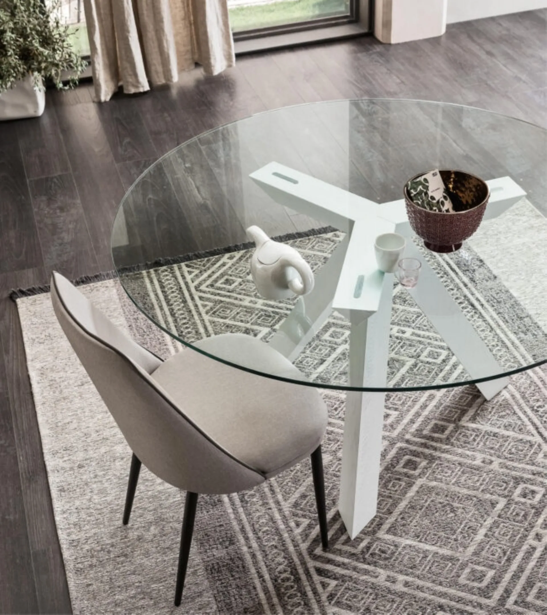 Se sei alla ricerca di tavoli fissi moderni, ti presentiamo il modello da pranzo in vetro Run del brand Maronese.