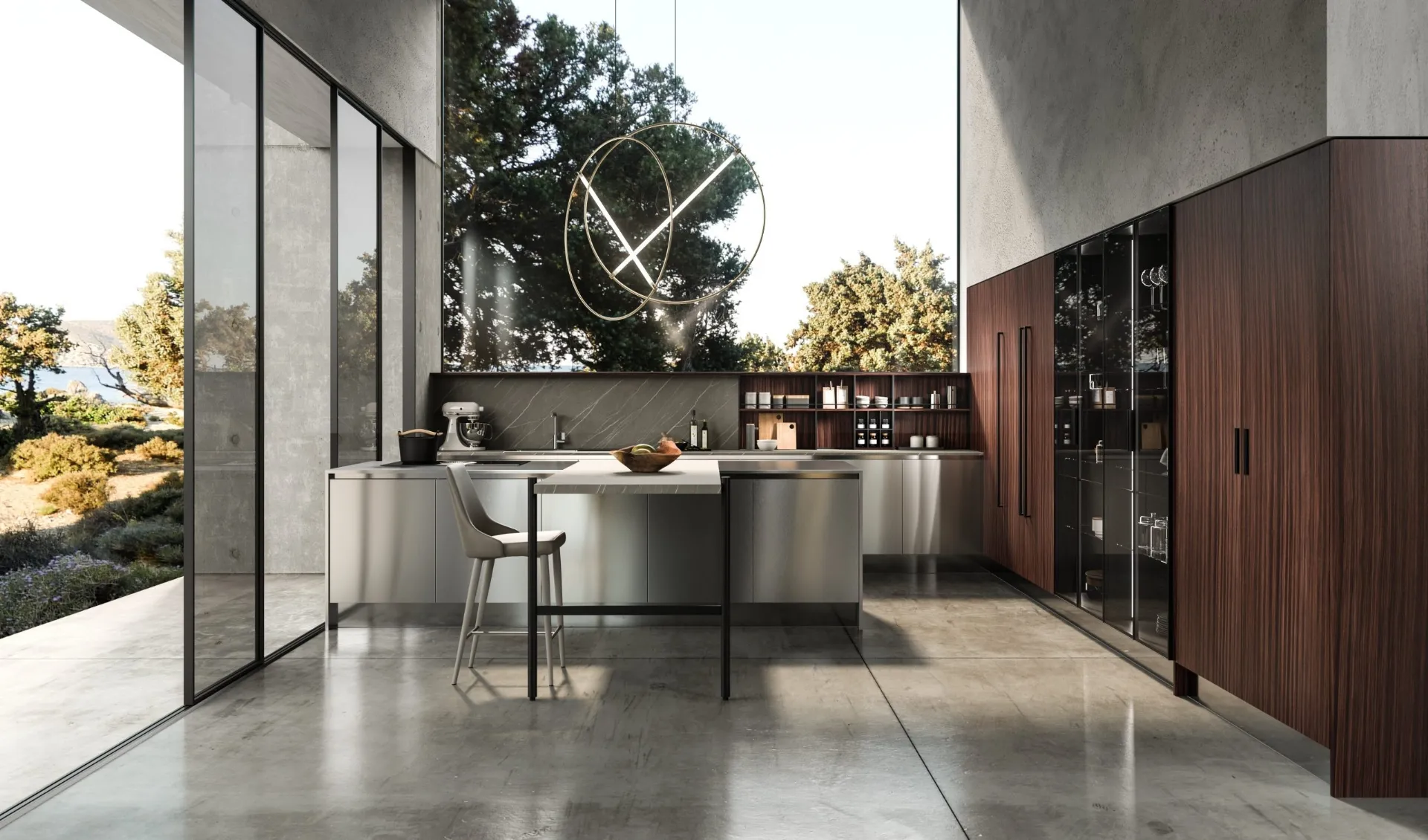 La progettazione è uno dei fattori basilari da considerare prima di ordinare delle cucine con penisola in stile design come quella qui visibile. Se vuoi ammobiliare i tuoi spazi con mobili ed elementi accessori di ottima fattura, il suggerimento da parte nostra è quello di optare per la Cucina Design con penisola Aciarium di Aran. Aran è il brand specializzato nella costruzione di arredi di design, con cui ogni cliente può sbizzarrirsi in quanto a finiture, conformazioni e varietà cromatica. Le Cucine Design in acciaio mantengono la bellezza originaria durante gli anni, assicurando un ottimo effetto estetico a completamento delle doti di praticità.