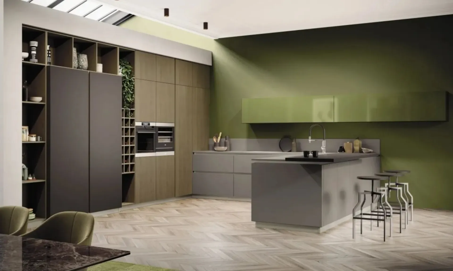 Con la Cucina Moderna AL 32 08 in Fenix Grigio Londra e pensili in Vetro Verde Oliva di Arrex potrai organizzare gli spazi impreziosendoli, unendo alla perfezione peculiari doti di praticità e linee ben studiate. Questa proposta ti lascerà senza parole per merito della quasi infinita gamma di finiture e elementi accessori sempre disponibili visitando il nostro negozio. Scopri un ricco catalogo di Cucine Moderne con penisola dei migliori brand: abbiamo selezionato per te le più esclusive soluzioni Arrex, caratterizzate da forme decise e massima componibilità. Se cerchi una composizione in laminato, ti suggeriamo il modello visibile in foto: materiali durevoli e finiture di tendenza sono garantiti.